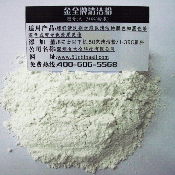 In the process of plastic molding, a great amount of raw material and manpower are required to remove the residue material in barrel whenever we change the color or material. The cleaning is very difficult and it will result in serious abrasion to screw. Allgong and Argiope brand super barrel cleaning powder and detergent will completely resolve above problems. Allgong and Argiope brand super barrel cleaning powder and detergent can be divided into two shapes according to the requirements of clients: liquid and powder. Please contact us for more details.